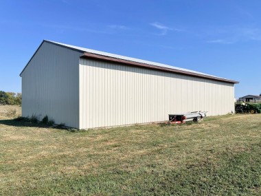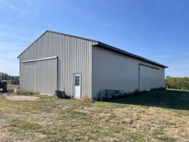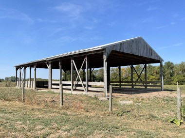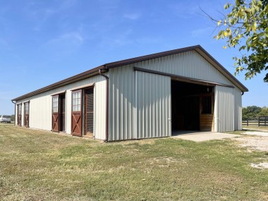 A newer eight-stall horse barn is the centerpiece of the property, complete with a wash stall, office with bathroom, and a concrete aisleway. The farm is well-equipped with five paddocks, four fields, and two round pens for training and turnout, along with two metal storage buildings for hay and equipment and two run-in sheds for added convenience.