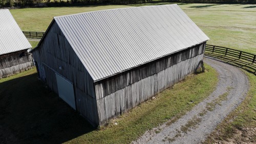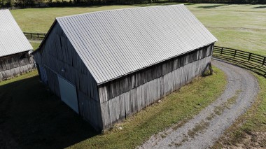 The original mule barn (with a new roof) offers a fully equipped studio apartment that sleeps six, with a full kitchen, bath, and walk-in closet. The large tobacco barn (also with a new roof) provides two steel storage containers for secure storage, while the carriage barn houses a workshop with multiple electrical outlets and additional storage.