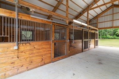 Located near to the home is the 4-stall Morton horse barn (36X36), featuring a cupola fan, concrete center aisle, wash bay, hot/cold water, heated tack room, stall fans, mats, automatic waterers, and a fly spray system.