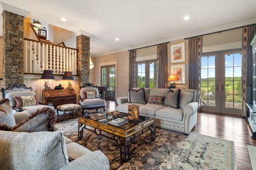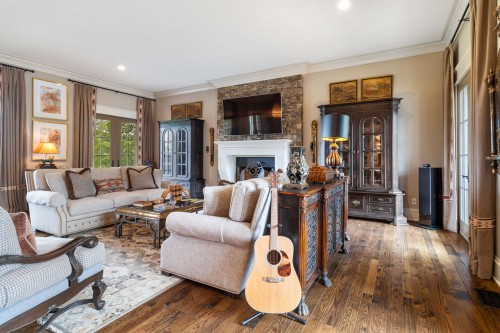A scenic drive through lush farmland guides you to this luxurious, top-quality home, thoughtfully designed by a Dallas architect. Perfect for indoor/outdoor entertaining, the residence features professional décor, custom stonework, exquisite light fixtures, elegant window treatments, and high-end Sub Zero/Wolf appliances. Modern comforts include; built-in sound system, butler's pantry, office/laundry room, mudroom, and a spacious great room with a wet bar. Enjoy relaxing on the expansive 1,356 sq. ft. wrap-around porch.