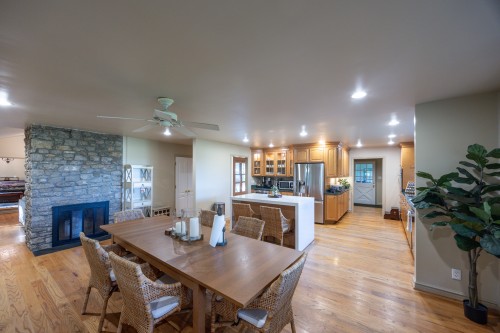 Overlooking the magnificent Elkhorn Creek in a very private park-like setting you will find the main residence/office. The gracious first floor contains 4 bedrooms and 3.5 baths. The lower level, with private entrance, consists of 5 rooms and 1.5 baths. The farm also contains a 2 bedroom– 1 bath employee house and a one bedroom, one bath employee cottage.